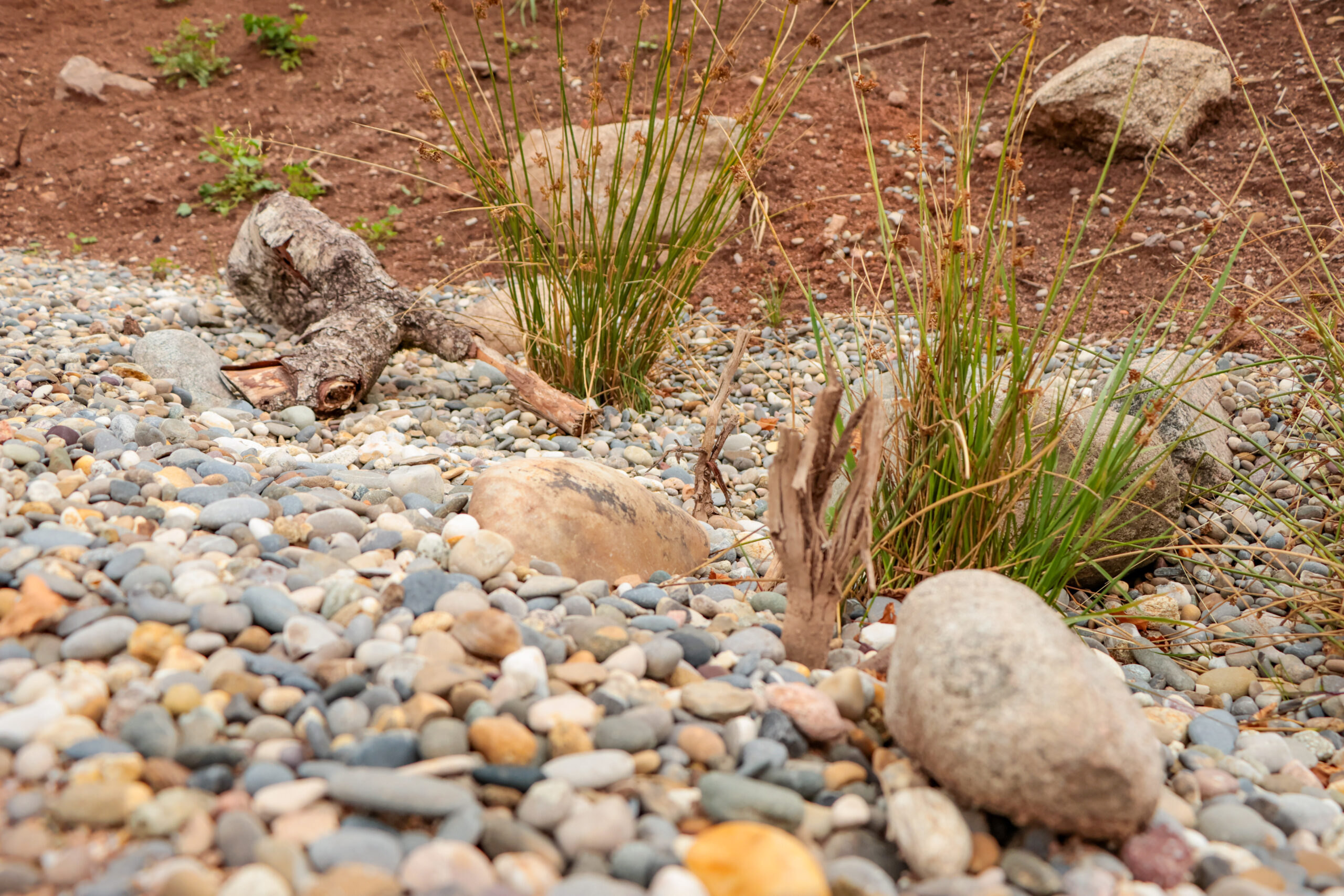 Zwischen aufgeschichteten Bruchsteinen und eingelegtem Totholz finden Frösche, Molche und andere kleine Tiere nicht nur Schutz, sondern auch Wärme und Ruhe. Die Steine speichern Sonnenwärme und bieten in ihren Spalten kühle Rückzugsorte – perfekt, um sich zu verstecken oder zu überwintern.