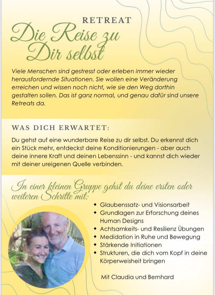 Claudia 0049 (0) 175 22 22 677 (auch Signal, Telegram oder WhatsApp). mail@claudia-walcher.de oder im kostenlosen Online Meeting am 17.01.2026 um 16:00 Uhr