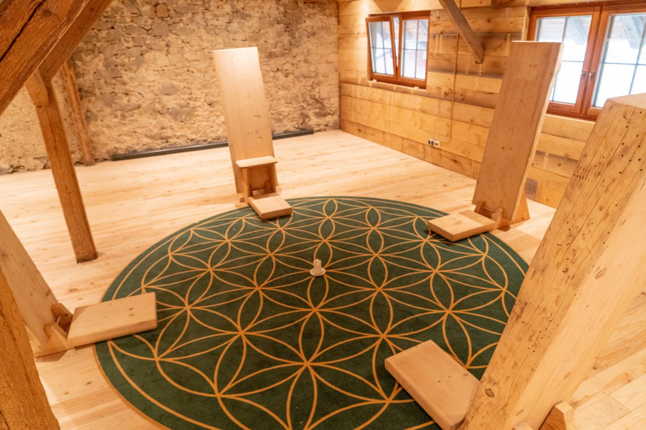 Unser Mobiler KraftOrt – bestehend aus einem Blume des Lebens Teppich, sowie besonderen